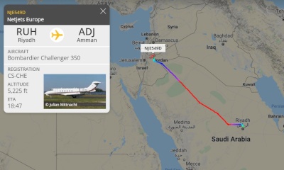 وأضاف مراسل الشؤون العسكرية في تغريدة له على "توتير" أن "رحلة الطائرة شهدت أيضاً توقفا دبلوماسيا في عمان".
