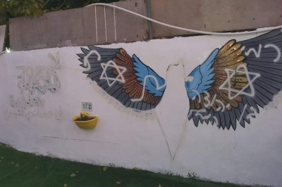 صدى نيوز - خط مستوطنون، اليوم الجمعة، شعارات عنصرية، وأقدموا على تخريب "جداريات الصمود" المرسومة قرب منزل عائلة الكرد المهدد بالتهجير القسري في حي الشيخ جراح في القدس المحتلة، وذلك للمرة الثانية.
