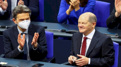 وتلقى شولتس ترحيبا حارا من المشرعين، وقدم له قادة الكتل البرلمانية باقات من الزهور.