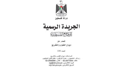 صدى نيوز - أصدر ديوان الفتوى والتشريع العدد 186 من الجريدة الرسمية الوقائع الفلسطينية.