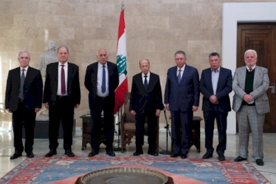 صدى نيوز - استقبل رئيس الجمهورية اللبنانية ميشال عون في قصر بعبدا، اليوم الثلاثاء، وفدا من اللجنة المركزية لحركة "فتح" برئاسة أمين سر اللجنة الفريق جبريل الرجوب، وضم أعضاء اللجنة روحي فتوح، وأحمد حلس، وسمير الرفاعي، وسفير دولة فلسطين لدى لبنان أشرف دبور، وأمين سر حركة "فتح" وفصائل منظمة التحرير الفلسطينية في لبنان فتحي أبو العردات.