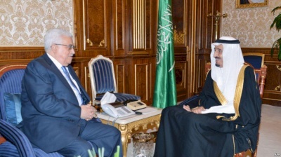 وكان في استقبال الرئيس في مطار الرياض، أمير منطقة الرياض فيصل بن بندر بن عبدالعزيز، ووزير الدولة، عضو مجلس الوزراء مساعد بن محمد العيبان، وسفير فلسطين لدى المملكة العربية السعودية باسم الأغا وطاقم السفارة.