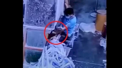 كما ظهر أحدهما وهو يقترب من فوهة الماكينة لتسحبه بشكل شبه كلي مع كميات كبيرة من الأوراق، ليهرع زميله في اللحظة الأخيرة إلى إيقاف الماكينة وإخراج العامل قبل أن تقضي الماكينة عليه، ليخرج بسلام، وفق ما نقلته وسائل إعلام محلية.