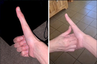 وشارك الشاب صوره ومقاطعه المصورة على حساب «تيك توك» الخاص به واسمه (jwpina)، مستعرضا ما يمكن أن يفعله إبهامه، بما في ذلك مقاطع متعددة بينها ما يتضمن مقارنة بين حجم إبهامه الممتد والأدوات المنزلية، مثل كوب ورقي وموزة وهاتف منزلي.