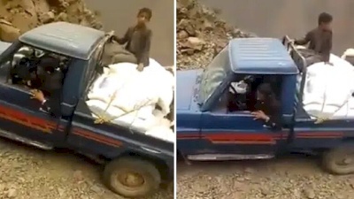وبحسب الفيديو، كان السائق يحاول الصعود بالسيارة المحملة بأكياس في طريق وعرة، فانزلقت السيارة للخلف وسقطت في الوادي، وعلى متنها عدد من الأشخاص.