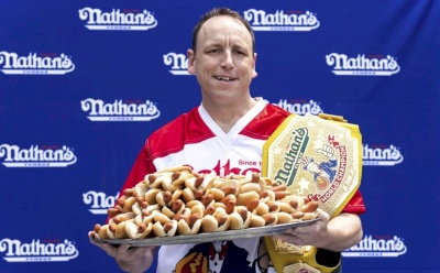 صدى نيوز - تنظم بطولة سنوية في كوني آيلاند بنيويورك بيوم عيد الاستقلال الأميركي، خاصة بأكل "الهوت دوج"، وقد فاز هذا العام رجل يدعى "جوي تشيسنت"، بعدما التهم 63 شطيرة في غضون عشر دقائق.