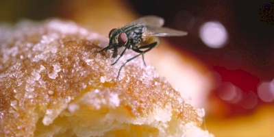 الفيديو صور بعدسة مكبرة حيث عرض ماذا يحدث عند وقوف الذباب على الطعام.