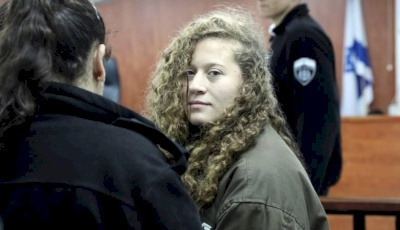 رام الله - صدى نيوز - رفع سفير بوليفيا، صورة الاسيرة عهد التميمي خلال اجتماع لأعضاء مجلس الامن.