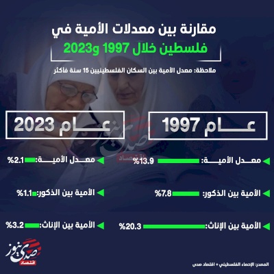 مقارنة بين معدلات الأمية في فلسطين خلال 1997 و2023