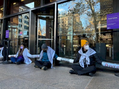 صدى نيوز - أغلق طلبة وأساتذة في جامعة نيويورك مكتبة (Bobst Library) في الحرم الجامعي بحي مانهاتن للاحتجاج على استمرار الحرب على غزة، وللمطالبة بقطع العلاقات مع الشركات والمؤسسات التعليمية في دولة الاحتلال وسحب الاستثمارات من الشركات الداعمة لها .