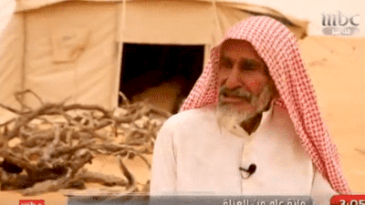 رام الله - صدى نيوز- للحب قصة جديدة جميلة ولكنها غريبة.. إنها قصة السعودي أبوشرعان الذي ولد في الصحراء واختار أن يعيش فيها حوالي 100 عام وحيدا في البر قريبا من ديار محبوبته التي لم تكن من نصيبه.