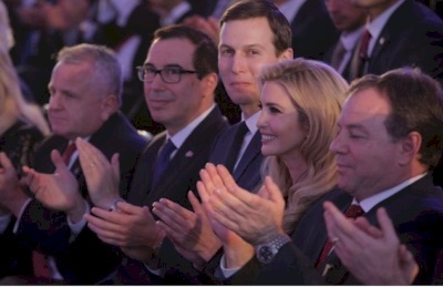 وحضر حفل تدشين أعضاء البعثة الامريكية الرسمية التي وصلت إلى الكيان لهذا الغرض، برئاسة وزير الخزانة ستيف منوتشين فيما تضم في عضويتها ابنة الرئيس الأمريكي ايفانكا ترمب وزوجها مستشاره جاريد كوشنير.