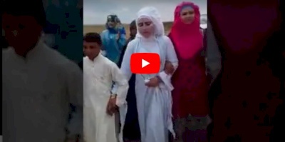 وأظهر مقطع الفيديو العروسين وهما يترجلان من سيارة ويتجهان نحو كوشة بسيطة من المقاعد البلاستيكية، بينما يظهر على وجه العروس الضيق الشديد .