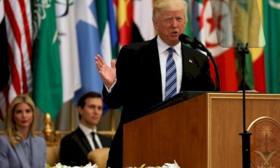 وقال ترمب لزعماء يمثلون نحو 55 دولة عربية وإسلامية، إنه يهدف لإقامة 'تحالف يقضي على التطرف تماما'، وإلى السلام والأمن والازدهار في هذه المنطقة والعالم، وأن 'المستقبل الأفضل في المنطقة يعتمد على طرد الإرهابيين'، واعتبر أن السعودية والتحالف الإقليمي قاموا بعمل كبير ضد المتمردين في اليمن، ويجب أن تضمن الدول الإسلامية أن الإرهابيين لن يجدوا ملاذا آمنا'.
