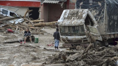 ووقفت عائلات في الحر أمام مشرحة أملا في العثور على ذويهم، الذين لاقوا حتفهم، عندما فاضت عدة أنهار في الساعات الأولى من صباح السبت، لتغمر المياه والطين والركام الطرقات والمنازل، بينما كان الناس نائمين.
