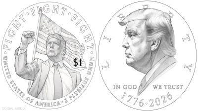وكان الكونغرس قد أقر عام 2020 تشريعا وقعه ترامب خلال ولايته الأولى يسمح لوزارة الخزانة بإصدار عملات معدنية من فئة دولار واحد "بتصاميم رمزية للاحتفال بالذكرى المئوية الخامسة والخمسين للولايات المتحدة".