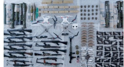 ومن بين المواد المضبوطة: 29 عبوة ناسفة من نوع كاليمغور، و4 طائرات مسيرة (اثنتان منها محملتان بالمتفجرات)، و15 صاروخًا مضادًا للدبابات، وقاذفة آر بي جي، وثلاثة رؤوس حربية، و20 قنبلة يدوية، و53 مسدسًا، و7 بنادق هجومية، و9 رشاشات، و750 رصاصة مسدس.