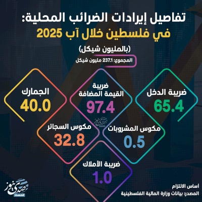 تفاصيل إيرادات الضرائب المحلية في فلسطين خلال آب 2025