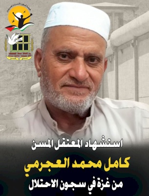 صدى نيوز - أبلغت الهيئة العامة للشؤون المدنية، كلًّا من هيئة شؤون الأسرى والمحررين ونادي الأسير الفلسطيني، باستشهاد المعتقل المسن كامل محمد محمود العجرمي (69 عاماً) من قطاع غزة، في مستشفى "سوروكا" الإسرائيلي بتاريخ العاشر من تشرين الأول/ أكتوبر 2025، حيث كان يقبع قبل نقله إلى المستشفى في سجن "النقب". يُذكر أنّ الشهيد العجرمي اعتُقل بتاريخ 25 تشرين الأول/ أكتوبر 2024، وهو متزوج وأب لستة أبناء.