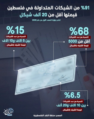 %91 من الشيكات المتداولة في فلسطين قيمتها أقل من 20 ألف شيكل