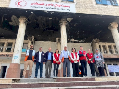وخلال الزيارة، تفقد الوفد مستشفى السرايا الميداني ومستشفى القدس، إضافة إلى المخازن المركزية التابعة للهلال الأحمر، حيث اطّلع على حجم التحديات الكبيرة التي تواجه المرافق الصحية في ظل الظروف الإنسانية الصعبة، والنقص الحاد في الإمكانات والمعدات والمستلزمات الطبية، وكذلك المولدات الكهربائية، واستمرار الضغط المتزايد على الخدمات المقدمة للسكان.