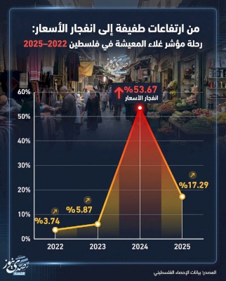 من ارتفاعات طفيفة إلى انفجار الأسعار: رحلة مؤشر غلاء المعيشة في فلسطين 2022–2025