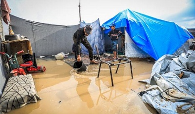يأتي ذلك بالتزامن مع الأوضاع الإنسانية المأساوية التي تزداد حدة في ظل المنخفضات الجوية التي تضرب المنطقة، وما يرافقها من غمر مياه الأمطار الخيام المهترئة والأغطية المتهالكة.