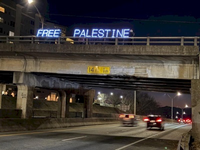 صدى نيوز - شهدت مدينة آشفيل بولاية كارولاينا الشمالية الأميركية تحركا لافتا، حيث قام نشطاء من منظمة "Veterans For Peace" التي تضم قدامى محاربين في الجيش الأمريكي، برفع لافتة مضيئة كُتب عليها "Free Palestine" فوق أحد الجسور الرئيسية في المدينة، للتضامن مع الشعب الفلسطيني .