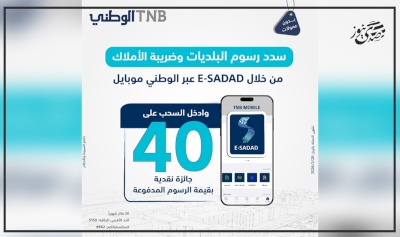 صدى نيوز - أعلن البنك الوطني عن إطلاق حملة تحفيزية جديدة تهدف إلى تشجيع المواطنين على تسديد رسوم البلديات وضريبة الأملاك إلكترونيا، وذلك من خلال تطبيق الوطني موبايل عبر منصة E-SADAD.