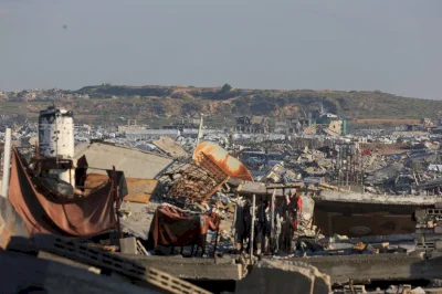 وتبدو منطقة السيطرة الإسرائيلية الآخذة في الاتساع أكثر وضوحاً في حي التفاح الذي كان يوماً ما حياً تاريخياً في مدينة غزة، لكنه صار أرضاً قاحلة تنتشر بها المباني المدمرة والحطام المعدني جراء القصف الإسرائيلي على مدى عامين.