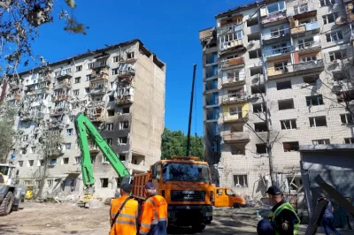 وكتب رئيس الإدارة العسكرية للمدينة تيمور تكاتشينكو -على منصة تليغرام- أن عدة مبان سكنية ومؤسسة تعليمية ومبنى تجاريا تعرضت لأضرار في أحياء شرق نهر دنيبرو.