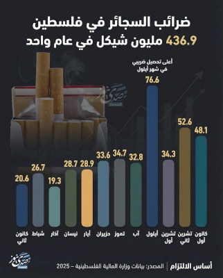 ضرائب السجائر في فلسطين.. 436.9 مليون شيكل في عام واحد