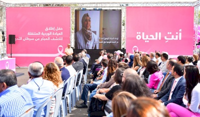 من جهتها تقدمت مدير عام مؤسسة لجان العمل الصحي شذى عودة بالشكر لكل من شاركوا المؤسسة وشاركوا نساء فلسطين الفرحة والبهجة بإطلاق العيادة الوردية المتنقلة للكشف المبكر عن أورام النساء والتي جاءت ضمن الحملة التي أطلقها مركز دنيا لأورام النساء التابع لمؤسسة لجان العمل الصحي وبنك فلسطين عبر برنامج فلسطينية مع فرقة الثلاثي جبران الفلسطينية العالمية من خلال تنظيم أول ماراثون موسيقي في فلسطين بهدف التوعية حول أهمية الكشف المبكر عن مرض سرطان الثدي في فلسطين.