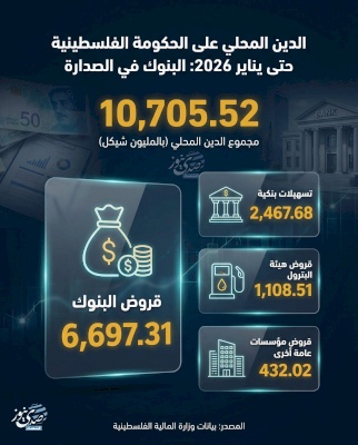 الدين المحلي على الحكومة الفلسطينية حتى يناير 2026: البنوك في الصدارة