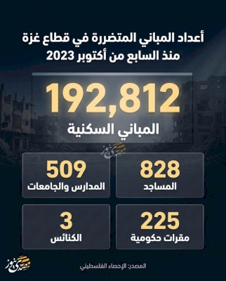 أعداد المباني المتضررة في قطاع غزة منذ السابع من أكتوبر 2023