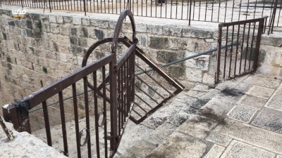 رام الله- صدى نيوز - أقدم الفلسطينيون مساء اليوم الاربعاء، على كسر البوابة الحديدة في ساحة باب الرحمة بالمسجد الاقصى المبارك من جديد.
