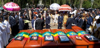 رام الله - صدى نيوز - شيعت العاصمة الإثيوبية أديس أبابا في مشهد حزين 17 شخصاً من أبنائها قتلوا الأحد الماضي مع 157 شخصاً من أكثر من 30 بلداً حول العالم بعد تحطم طائرة البوينغ 737ماكس المتجهة إلى العاصمة الكينية نيروبي.