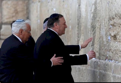 القدس - صدى نيوز - اصطحب وزير الخارجية الأمريكي مايك بومبيو الخميس، رئيس الوزراء الإسرائيلي بنيامين نتنياهو في زيارة إلى حائط البراق في البلدة القديمة بمدينة القدس المحتلة، في بادرة هي الأولى من نوعها منذ اعتراف واشنطن بالقدس "عاصمة لإسرائيل".