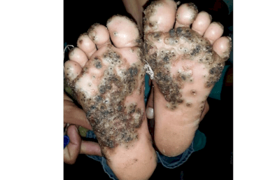 رام الله - صدى نيوز - ترجمة خاصة - طفلة في العاشرة من عمرها ذهبت إلى عيادة الرعاية الأولية بعد أن ظهرت آفات على قدميها وأصابع قدميها لمدة 10 أيام.