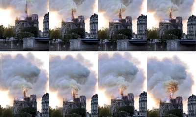 ونظر أبناء باريس والسياح المصدومين غير مصدقين لما يحدث، بينما كان الحريق يستعر في الكاتدرائية التي تقع في جزيرة إيل دو لا سيت في نهر السين/ وتعد معلما رئيسا في وسط العاصمة الفرنسية. وعبر زعماء العالم عن صدمتهم وأرسلوا برقيات مواساة للشعب الفرنسي.