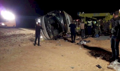 رام الله - صدى نيوز - لقي 6 معتمرين أردنيين، اليوم الاثنين، مصرعهم، فيما أصيب 38 آخرون بجروح، جراء تدهور حافلة، كانت تقل 50 معتمرا، في منطقة المعمورة غرب محافظة الطفيلة، جنوب الأردن.
