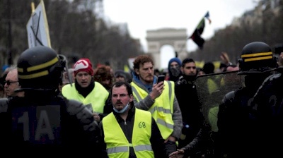 رام الله - صدى نيوز - وسط إجراءات أمنية مشددة توافد المتظاهرون من حركة السترات الصفراء إلى شوارع العاصمة الفرنسية باريس وعدد من المدن بعد يوم من تعهد الرئيس الفرنسي إيمانويل ماكرون بخفض الضرائب.