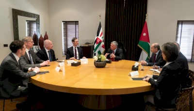 وجرى اللقاء بحضور، وزير الخارجية وشؤون المغتربين أيمن الصفدي، ومستشار الملك للاتصال والتنسيق الدكتور بشر الخصاونة، والسفيرة الأردنية في واشنطن دينا قعوار، ومساعد الرئيس الأمريكي والممثل الخاص للمفاوضات الدولية جيسون غرينبلات، والوفد المرافق.