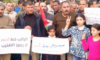 فيما رفع المعتصمون شعارات منددة بسياسة الخصومات وطالب المتحدثون بضرورة تراجع الحكومة عن هذا القرار المجحف بحق الموظفين, فيما كانت الهتافات "ارحل ارحل يا حمد الله", محملين الدكتور رامي الحمد الله مسؤولية هذا القرار, بالإضافة إلى مسؤول المالية شكري بشارة.