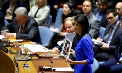 رام الله - صدى نيوز - قالت السفيرة الأميركية لدى الأمم المتحدة، نيكي هيلي، إنها ترى أن تغيير النظام في سورية إحدى أولويات إدارة الرئيس دونالد ترامب.
