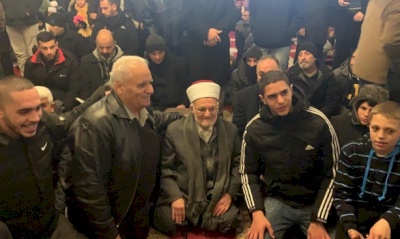 وحمل فلسطينيون الشيخ صبري على أكتافهم مرددين "الله أكبر" أثناء دخوله المسجد.