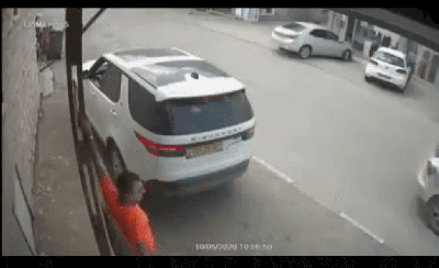 ويظهر في الفيديو نزول سائق من سيارته بعد أن قام بإيقافها على جانب الطريق، لكن ولسبب غير واضح انزلقت السيارة وتابعت سيرها ما تسبب بدهس وسقوط سائقها أرضًا.