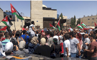 وتأتي المظاهرة احتجاجاً على استمرار عمل السفارة "الإسرائيلية" في عمان بعد حادثة مقتل شابين أردنيين على يد حارس أمن "إسرائيلي" داخل السفارة.