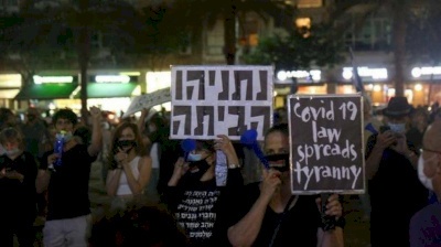 وذكرت صحيفة "جيروزليم بوست" العبرية، على موقعها الإلكتروني، أن مئات المتظاهرين أغلقوا طريقا رئيساً بالقرب من ميدان رابين وسط تل أبيب مساء الخميس، احتجاجا على مشروع قانون "فيروس كورونا".