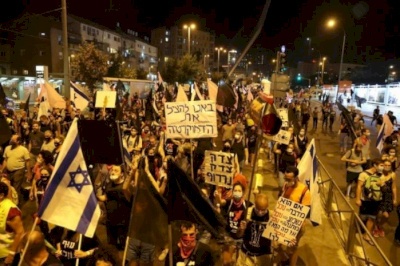 وانتقد المتظاهرون هذا الأسبوع توجه نتنياهو لفرض إغلاق شامل للسيطرة على تفشي فيروس كورونا، حيث رأوا أن هذا الإغلاق لديه أهداف مبطنة تتمثل في قمع المعارضة الشعبية وتقليل أهداد الحشود في التظاهرات.